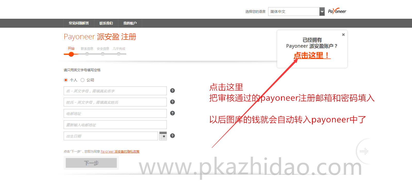 需要注意的是,如果你直接打开Payoneer官网或在图库后台进行注册,暂时是没有上述优惠的,请务必打开Payoneer返现注册链接【http://tracking.payoneer.com/SH33Z】,参考【最新Payoneer账户申请教程 】进行注册。
