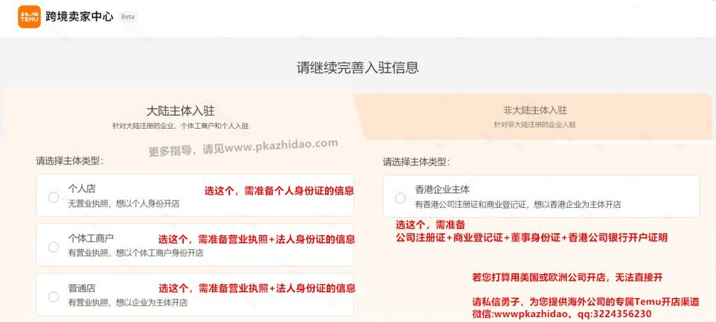 Temu半托管店铺,截止到24年7月份,目前支持内地证件、香港企业、美国本土企业和欧洲本土企业开店。